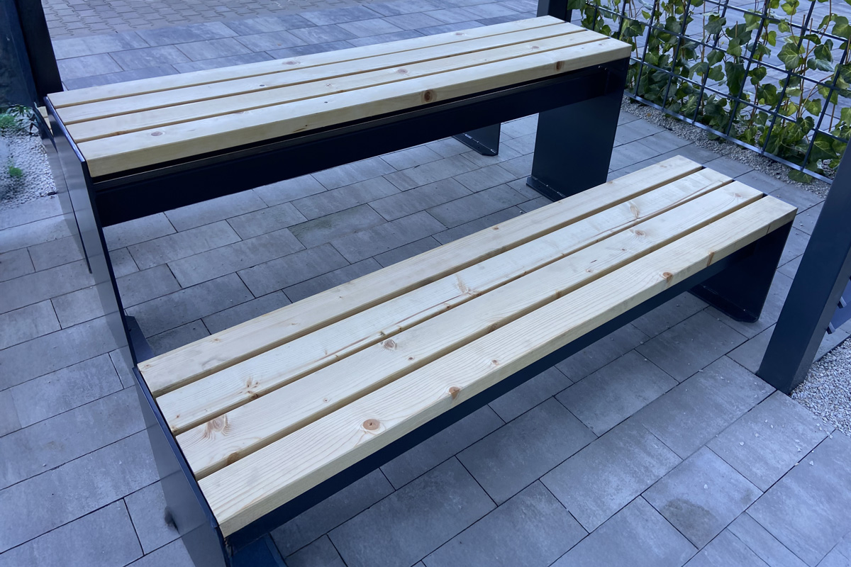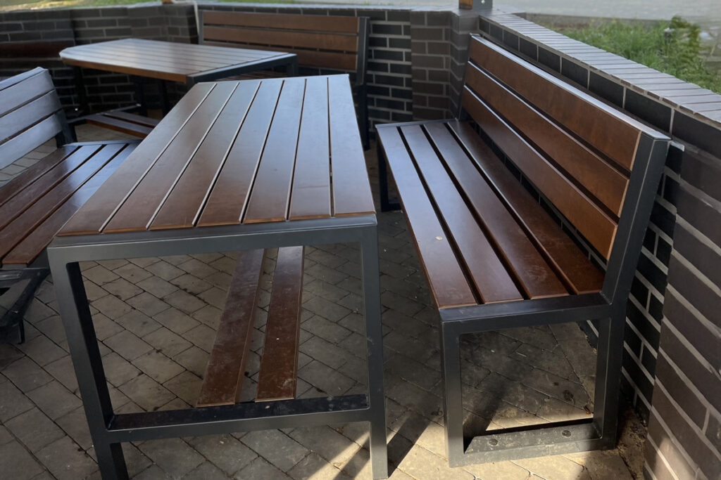 Oferujemy zestawy parkowe – ławki, kosze i stojaki rowerowe ze stali, które tworzą spójną, trwałą i estetyczną aranżację przestrzeni publicznych.