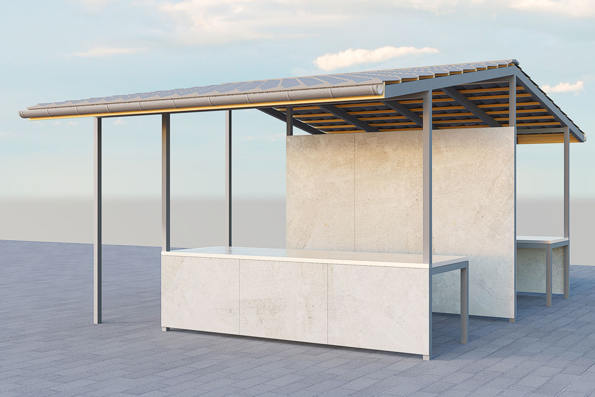 Wiata handlowa wykonana w systemie modułowym pozwalają na tworzenie nieskończonej liczby kombinacji.
